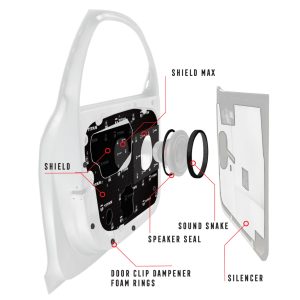 Installing TITAN ULTIMATE DOOR KIT will significantly improve your travelling experience by reducing road noise, panel vibrations, heat transfer and enhance speaker audio performance. It achieves this in a number of ways. 1. Install the SHIELD Butyl sheets to the external internal door surfaces (outer & inner skins) transforming the properties be the ultimate noise and heat barrier. 2. Adding the SILENCER Acoustic Cotton material behind the door trim absorbs, disperses and even contains sound. This natural material is effective because it’s porous, accepting and contain energy. It also eliminates creaking, rattling of wires and harnesses. 3. Installing the SHIELD MAX where the speaker is mounted eliminates panel vibration around the speaker area and also acts an air tight seal between the speaker mounting plate and the door panel to eliminate bass response lost due to gaps. Use the remaining SHIELD MAX from the speaker hole created and stick it to the door panel behind the speaker to further enhance the audio performance by absorbing backwaves 4. Applying the Speaker Foam strip around the speaker mounting surface further acts as an air tight seal to eliminate bass response lost from gaps between the speaker and the mounting plate. 5. Attaching the Sound Snakes (suitable for up to 8 inch speakers ) around the front lip of the speaker acts a seal to the door trim panel. This stops audio being lost behind the door trim and also directs all the sound into the car. 6. The Door Clip Dampener Rings eliminate rattles that can be produced between the door and the door trim panel. Install ULTIMATE DOOR KIT to get a luxury car experience!